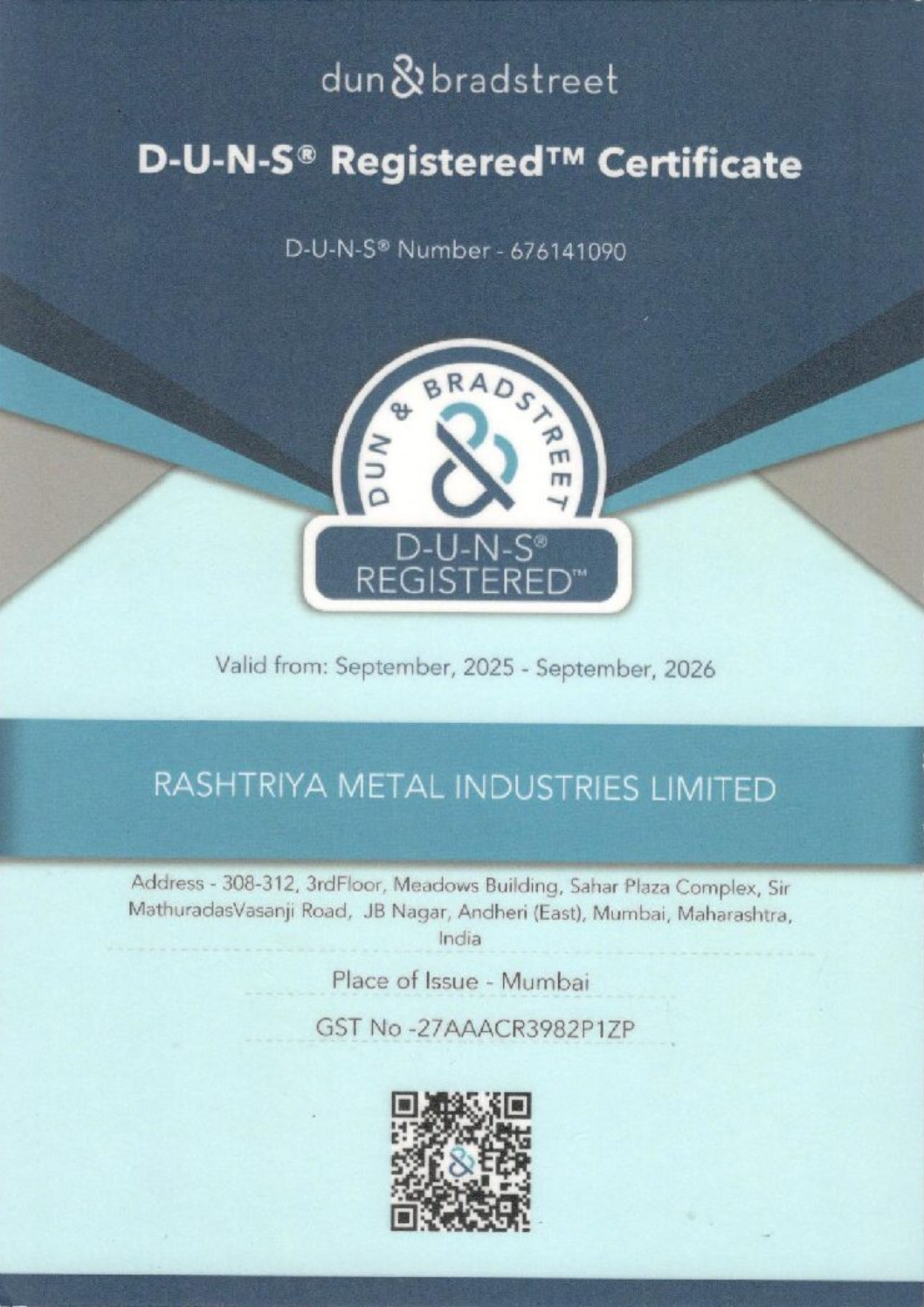 Rashtriya Metal Industries Ltd is part of Gravita Group, a globally recognized organization with a presence across multiple metals and manufacturing sectors.