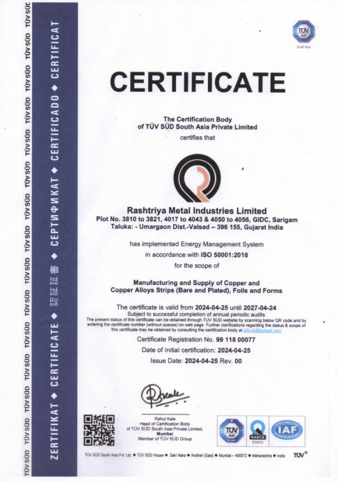 Established in 1947 in Mumbai, RMIL has been manufacturing copper and copper alloys in the form of sheets, strips, foils, cups and blanks for more than 70 years. The company has consistently strengthened its capabilities, with operations consolidated in 2010 at a modern, integrated manufacturing facility in Sarigam (near Vapi), Gujarat, India.